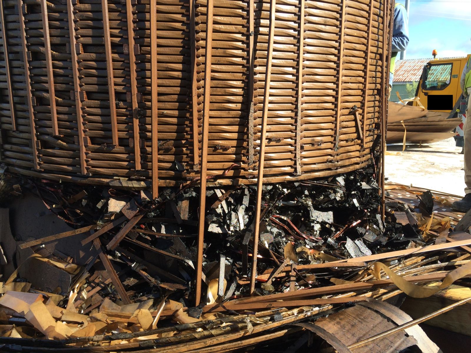 A-Line started by stripping the transformer of auxiliary components and then the walls were cut exposing the core for initial examination. Many components were salvaged and sent to the manufacturer for further investigation or reuse.
